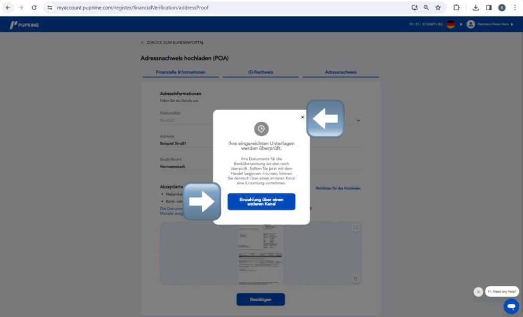 Solltet ihr per Bank einzahlen wollen, müsst ihr nun ca. 24h warten, bis alles verifiziert ist.