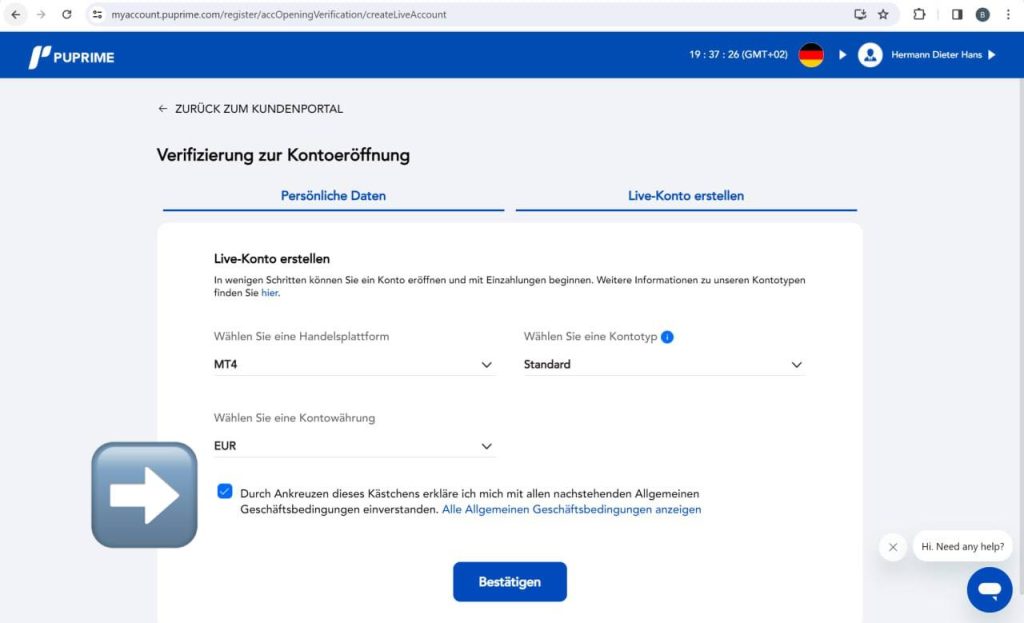 Kreuzt noch unten das Kästchen für die Einzahlung an und drückt dann den „BESTÄTIGEN“ Button ganz unten.